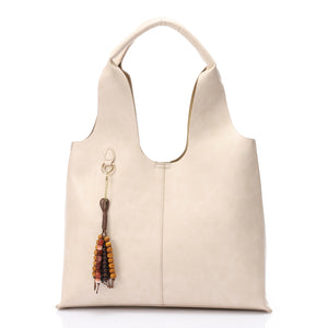 Designed for effortless elegance, this soft carry tote bag offers a roomy interior and a clean, modern silhouette. Finished with a decorative beaded accessory and comfortable top handle, it’s perfect for workdays, shopping, or casual styling.