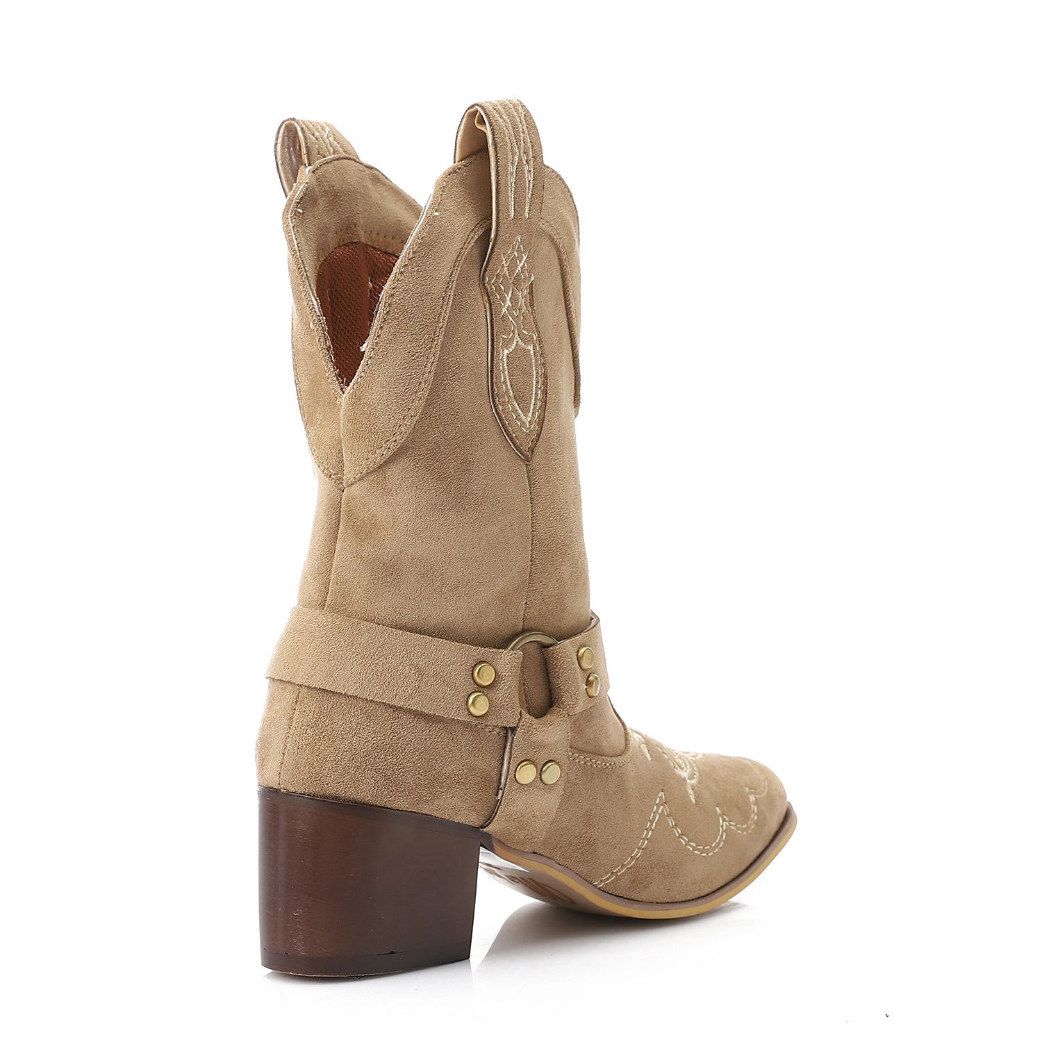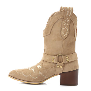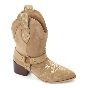 Western-Style Suede Half Boot - Beige